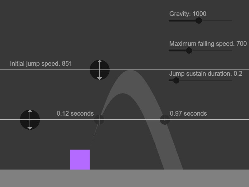 - Jump sustain time is how long the jump speed can be kept to the initial value while players hold the jump key.