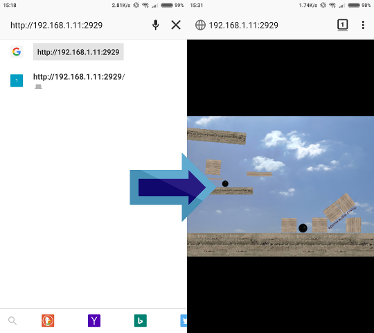 これで、スマートフォンのブラウザー(または他のコンピューターのブラウザー)にこのアドレスを入力できます。プレビューがロードされ表示されます: